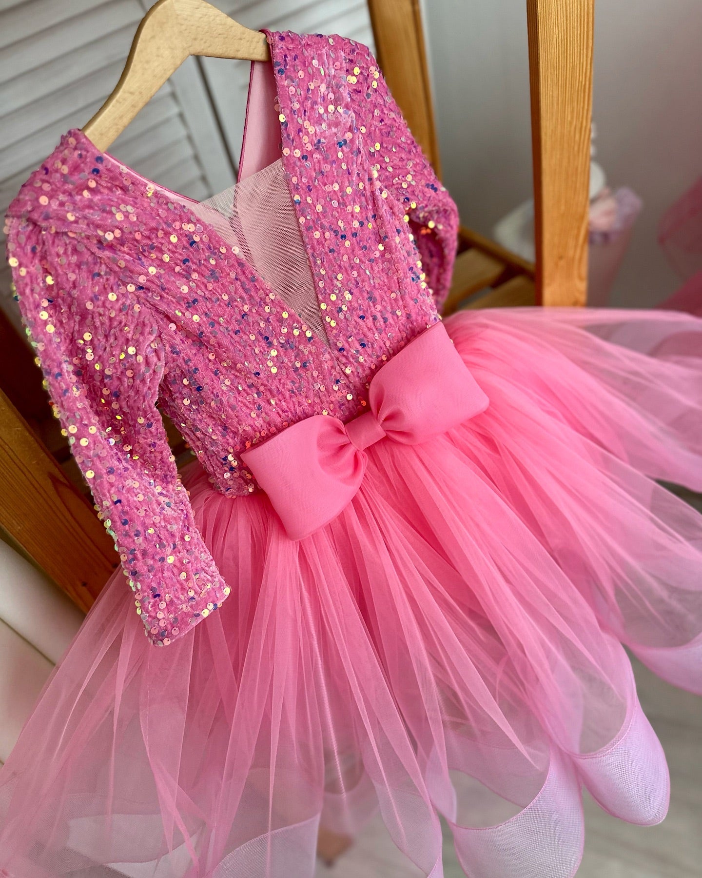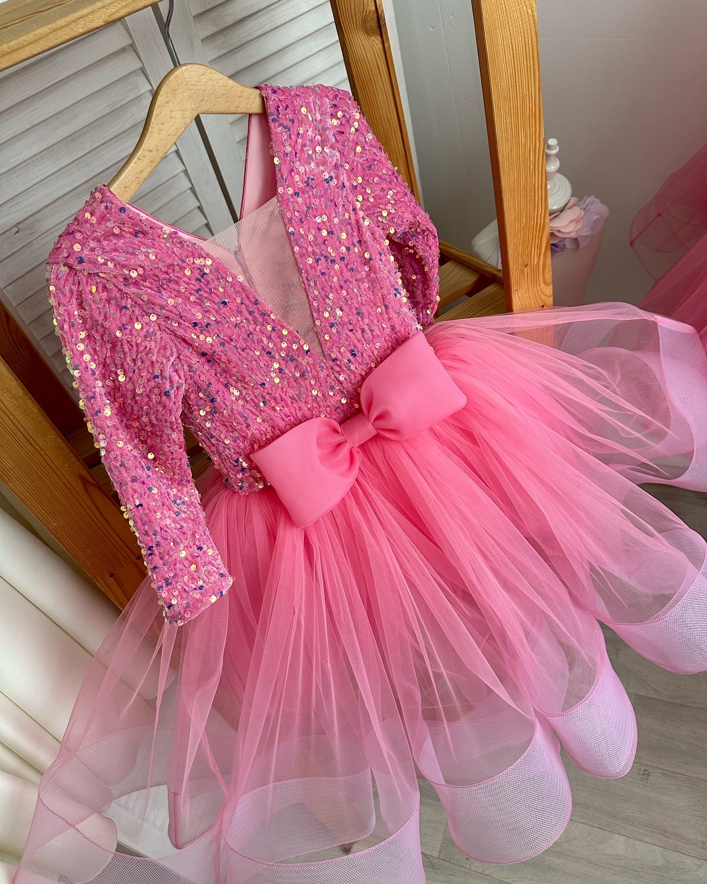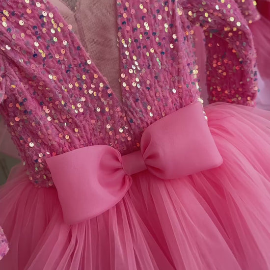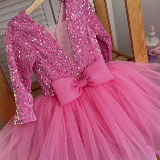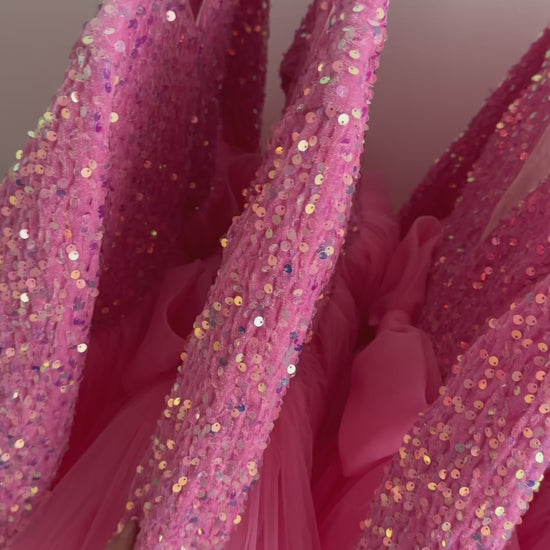 Experience elegance with the Beautiful Barbie Color Very Lush Sequence Skirt. This dress features a stunning barbie color and is made with soft, velvet sequin material for a luxurious feel. The slightly open neck and bow in front add a touch of femininity. Perfect for special occasions or a night out, this skirt is a must-have in your wardrobe.